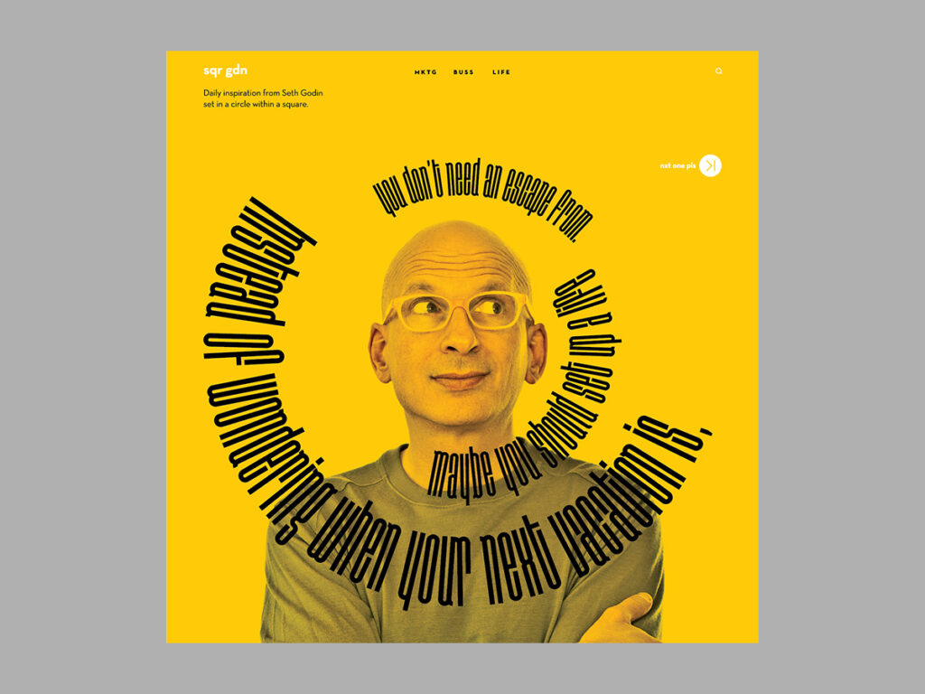 Have you tried the Square Interface Game yet? Do it, it’s fun. This is our interface design concept, using Seth Godin and his perspectives on business, marketing and life for inspiration.