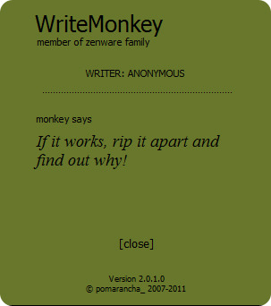 Writemonkey is a Windows writing application with an extremely stripped down user interface, leaving you alone with your thoughts and your words. It is light, fast and free. With an array of innovative tools under the hood and full Markdown* support, it helps you write better.